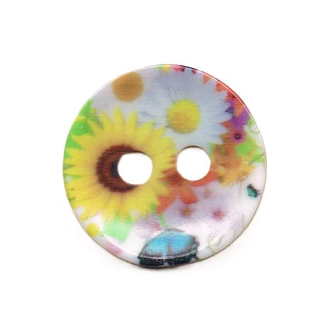 Bouton décoratif 34mm, marguerite, tournesol avec 2-trous