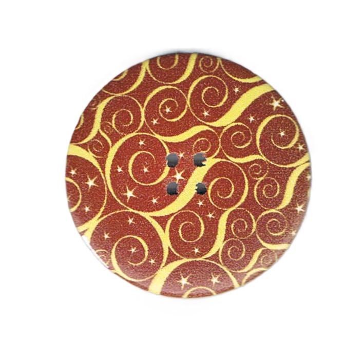 Bouton décoratif 40mm, bois déco, marron, ocre à 4-trous