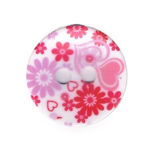 Bouton décoratif 45mm blanc avec fleurs rose, 2-trous