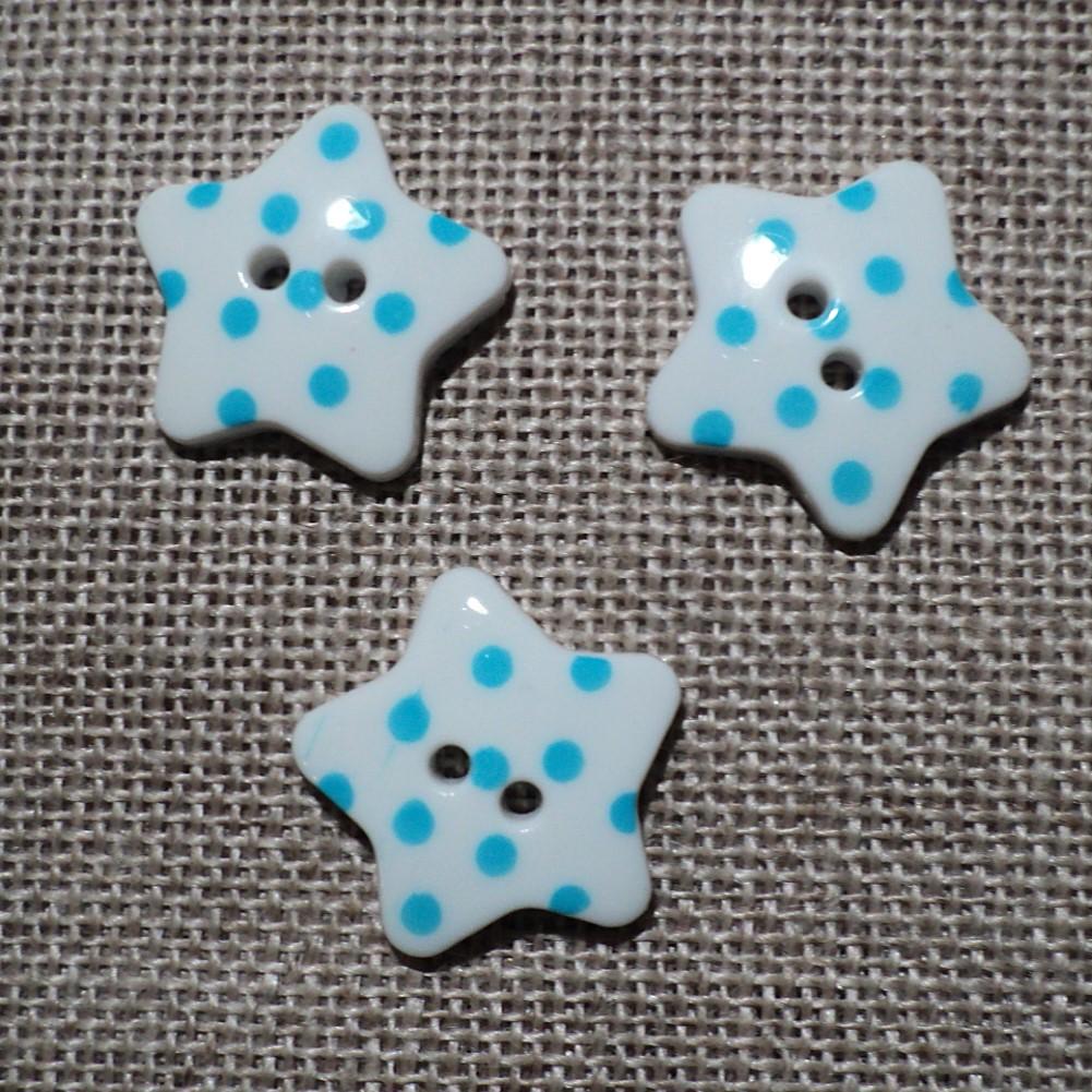 Bouton étoile blanc à pois turquoise 17mm avec 2-trous