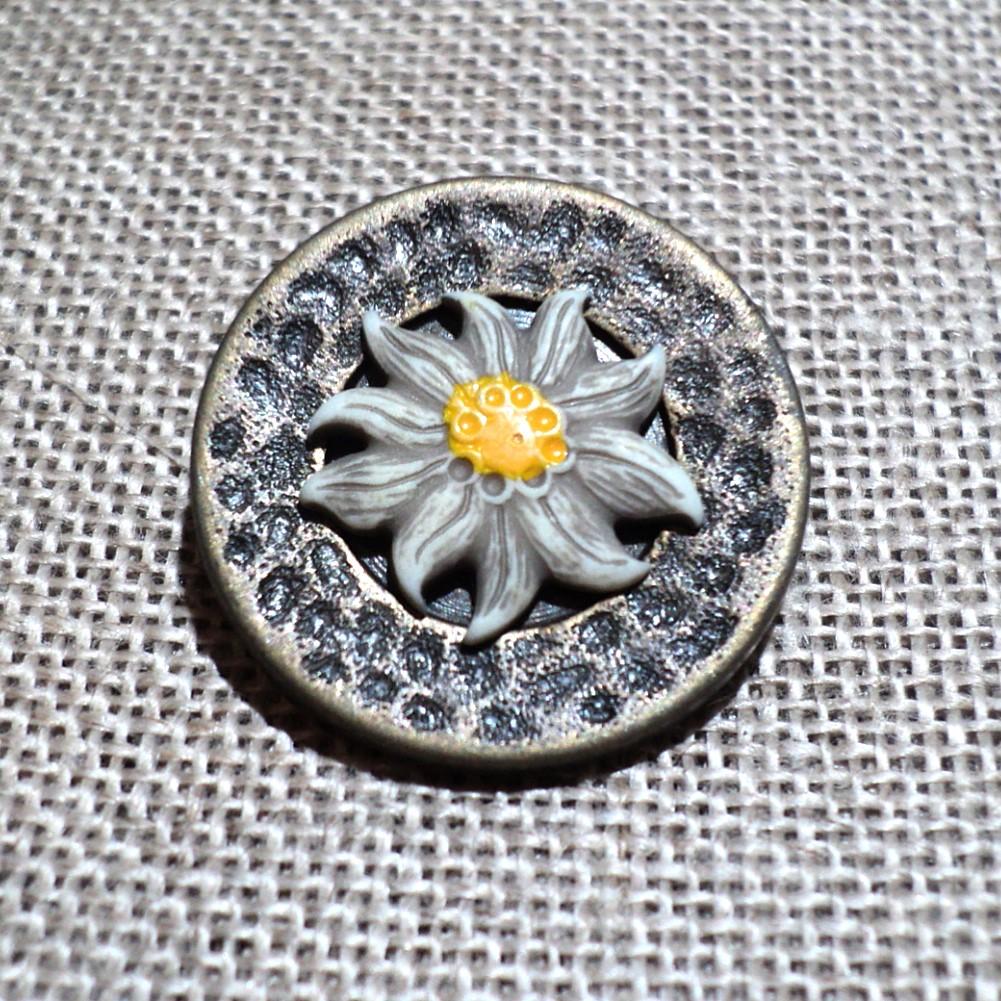 Bouton métal tyrolien « Edelweiss » bronze 22mm, Bouton folklorique avec l’edelweiss blanc