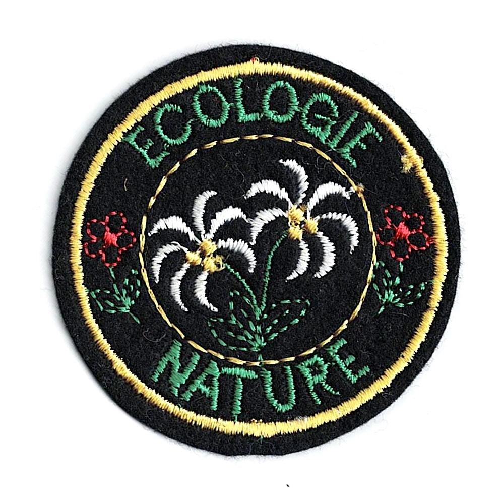Écusson Thermocollant écologie nature 7.0cm ronde fond noir avec rouge, vert et blanc