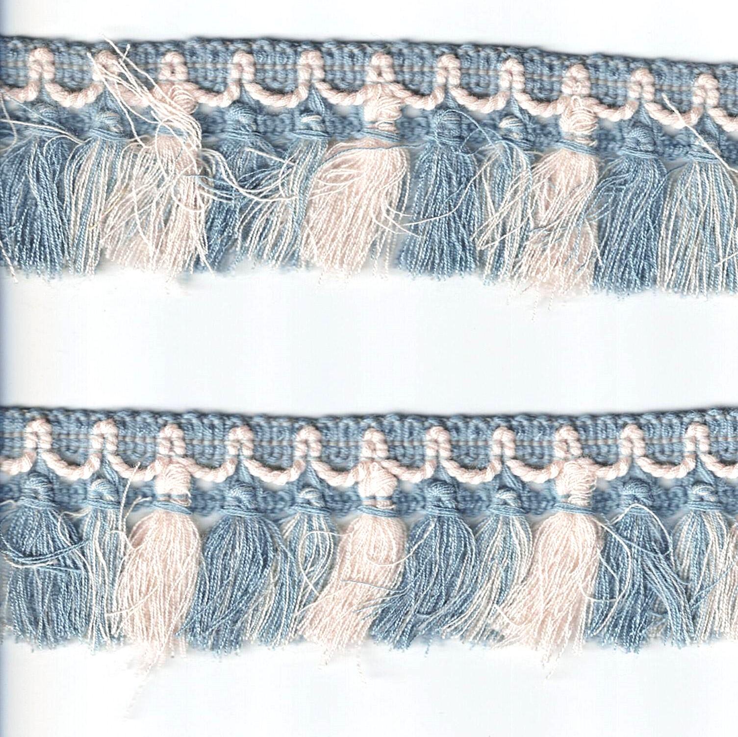 Frange décorative bleu antique avec écru