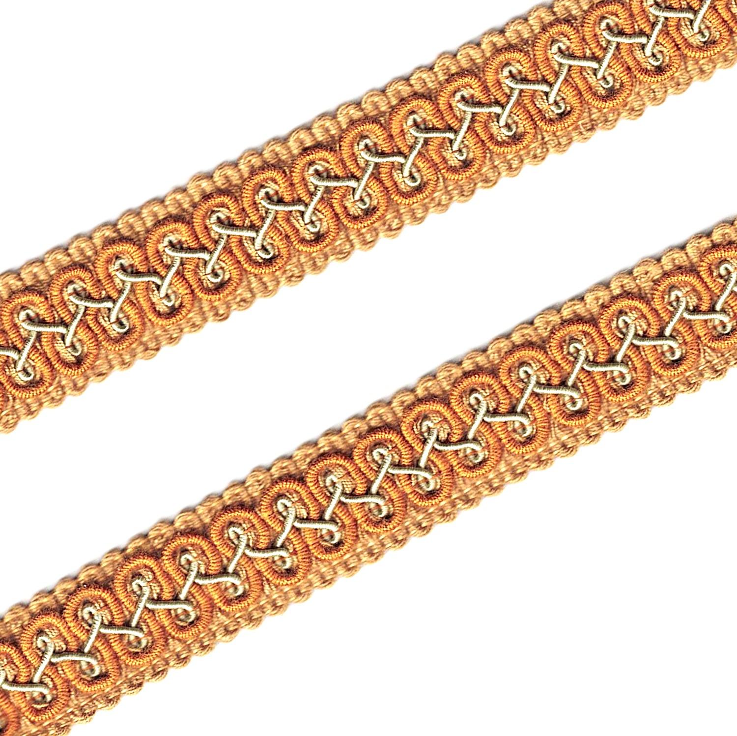 Galon Passementerie 24mm ocre avec orange et vert d’eau