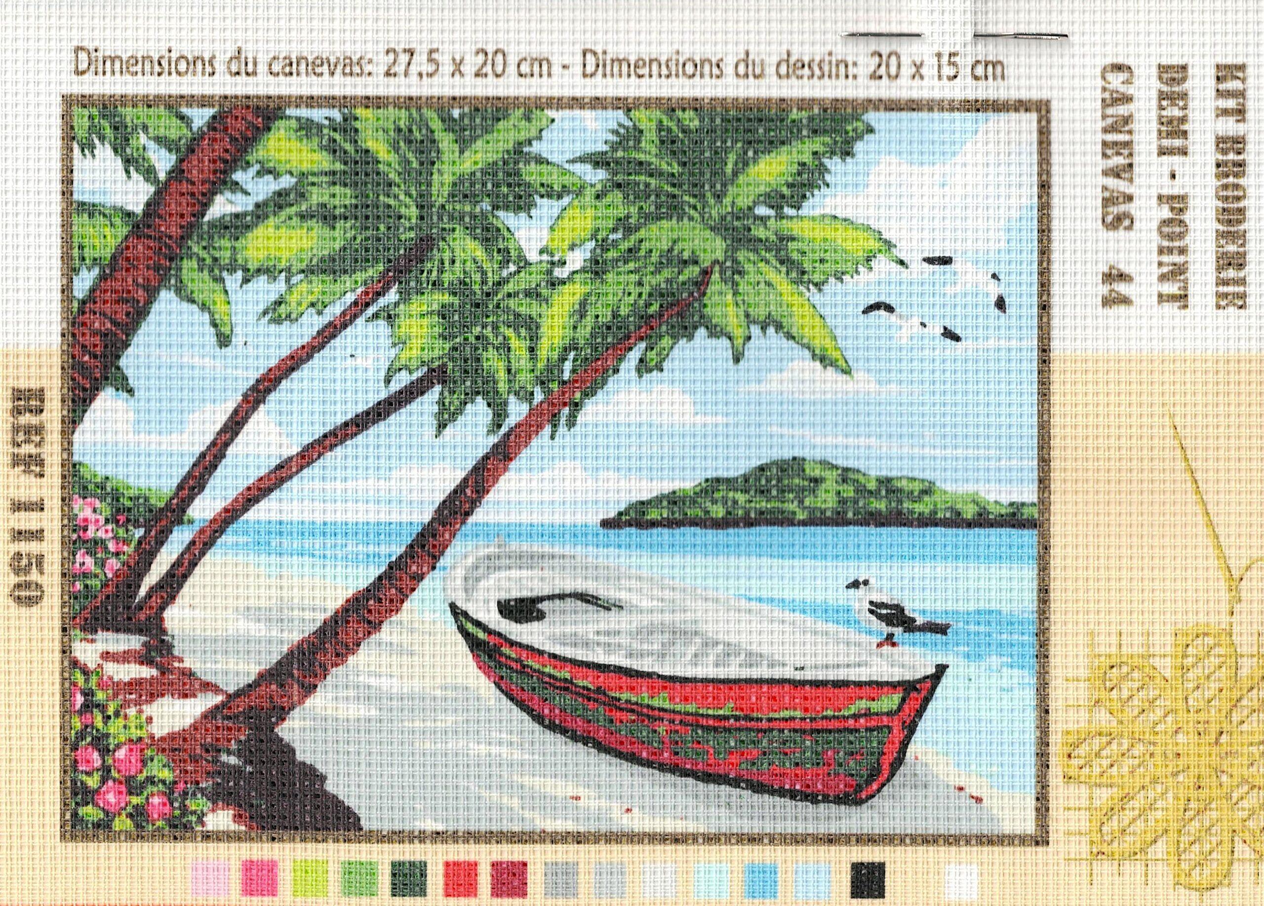 Kit canevas 27.5x20cm, Plage tropicale avec des palmiers demi point croix