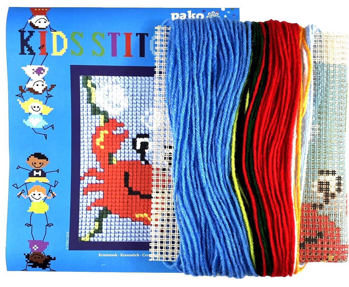 Kit Canevas ENFANT soudan 18x24cm « le crabe rouge » gros trou débutant, point de croix