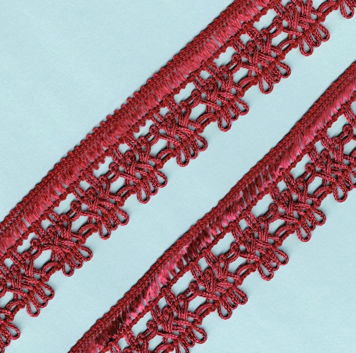 Ruban Dentelle crochet BORDEAUX 30mm, galon frange