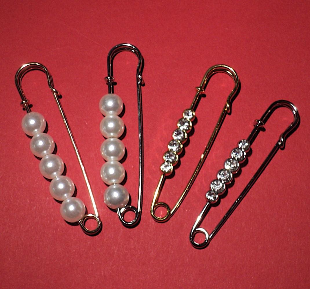 Set de 4 épingles Kilt décoratives avec strass, perles métal argenté, doré 65mm et 70mm fermoir gilet, veste, attache gilet, veste sans coudre
